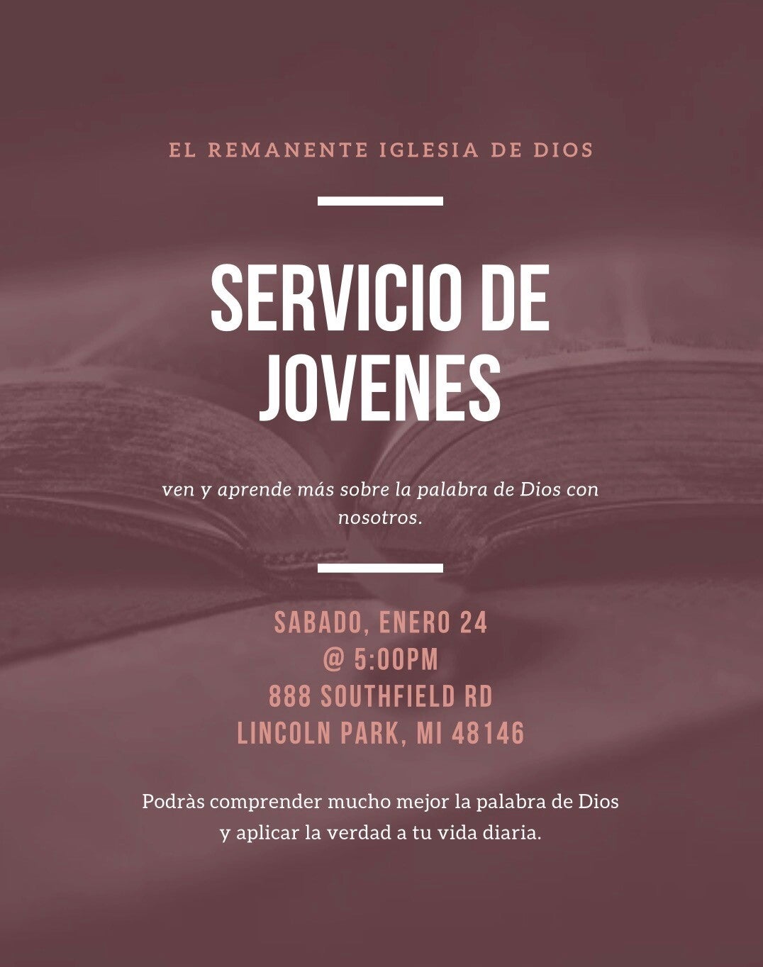 En El Remanente Iglesia de Dios, nuestro propisito primordial es compartir el evangelio de Jesucristo y el amor de Dios con todas las generaciones. Nos esforzamos por ser una comunidadad acogedora que fomente el crecimiento espiritual y brinde apoyo a personas y familias en la ciudad de Lincoln Park, Michigan y sus alrededores.
